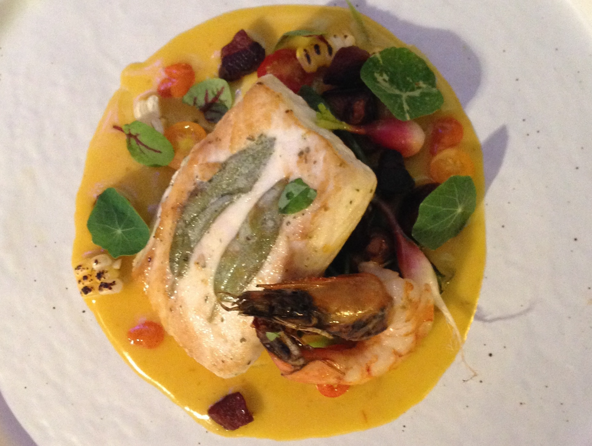 Finally, plate the Snapper in the center of your dish and garnish with veggies, herbs, and sauce for the finishing touch.